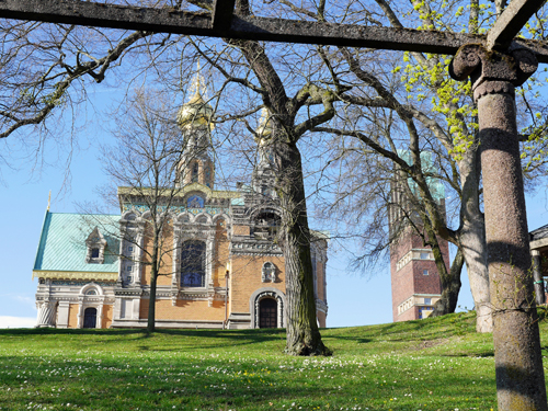 der Mathildenhöhe. Die Kirche ist auf russischer Erde