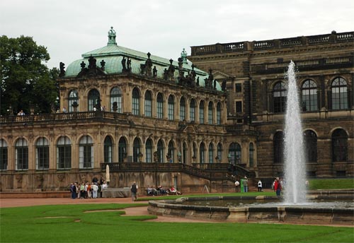 Der Französische Pavillon ist der andere -nordwestlich gelegene- Eckbau innerhalb des Ensembles, der spiegelbildlich dem Mathematisch-Physikalischen Salon gegenüber liegt. |