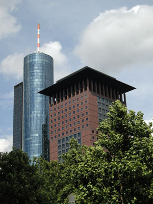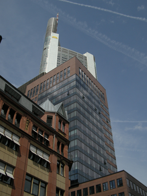 | Zu den beeindruckenden Gebäude, die zu erwähnen sind gehört der Commerzbank Tower von Sir Norman Foster geplant wurde. Mit seiner strukturellen Höhe von 259 Metern ist er das höchste Gebäude Deutschlands und steht am Kaiserplatz. |