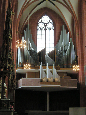 | Da beide Instrumente gleichzeitig erklingen können ist die Orgel von daher mit ihren 115 Registern und 8801 Pfeifen die siebtgrößte Orgel Deutschlands. Die Hauptorgel wurde 1957 von Klais im neobarocken Stil erbaut. | |