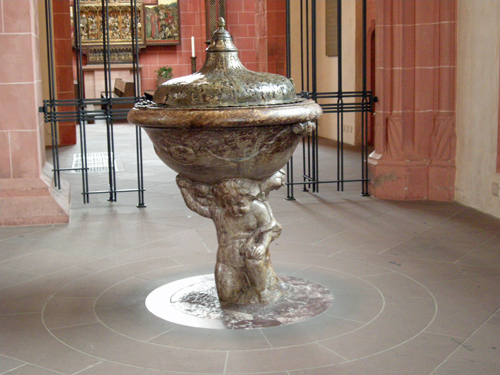 | An das südliche Seitenschiff schließt sich die 1487 in spätgotischer Form erbaute Scheidskapelle an. Sie dient heute als Andachtsraum und Taufkapelle. Das Taufbecken wird von einem Putto getragen und stammt aus dem frühen 18. Jahrhundert. |