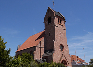 | Die Kirche wurde ursprünglich um 1900 im neuromanischen Stil errichtet und 1945 wie viele andere Gebäude der Stadt ebenfalls zerstört. Nach dem Wiederaufbau um 1950 fällt heute besonders der Altarraum und das Kirchenfenster mit der Lutherrose auf. |