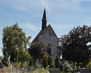 | In der Mitte der Friedhofsanlage ist die Michaelskappelle zu sehen, die 1862 im neugotischen Stil errichtet worden ist. Neben vielen alten Grabmälern sind auch solche Gräber zu finden, die dem Historismus und dem Jugendstil zuzuordnen sind. | |