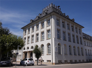 Das markante Gebäude an diesem Platz wurde 1911 als Gymnasium im Jugendstil erbaut. Heute ist darin eine Schule für lernbehinderte Kinder untergebracht. |
