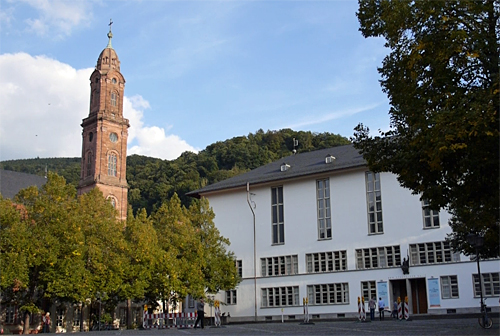 Der dreiflüglige, denkmalgeschützte Gebäudekomplex befindet sich am Universitätsplatz nicht weit von der Alten Universität. Tradition und moderne zu vereinigen war die Voraussetzung bei dem Bau der Neuen Universität. Die Neue Universität präsentiert sich als ein verputzter Baukörper, der mit traditionellen Baustoffen erstellt wurde. Das Walmdach und die Gauben sind mit Schiefer gedeckt. Sämtliche Gesimse, Fenster- und Türlaibungen sowie das Sockelgeschoss sind in Travertin gefertigt, was dem Gebäude ein äußerst elegantes Erscheinungsbild verleiht. Die hohen schmalen Fenster sollen eine harmonische Anpassung an die Umgebung sein. Über dem Eingangsportal ist eine Bronzeplastik der Athene zu sehen, die allgemein als Symbol der Weisheit gilt. Sie wurde von dem Bildhauer und Lithografen Karl Albiker geschaffen. Zu Beginn des 21. Jahrhunderts wurde die Neue Universität umfangreich renoviert, saniert und modernisiert, was ebenfalls durch die finanzielle Unterstützung namhafter Spender geschehen konnte. Auf der gegenüberliegenden Seite am Universitätsplatz ist unser nächstes Ziel zu sehen, die Alte Universität |
