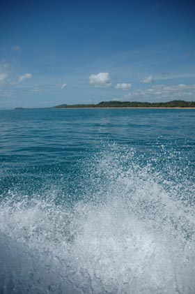 Die etwa 10 minütige Fahrt auf die Insel war der Hammer. Das Boot hat mit den beiden Motoren eine ganz schöne Geschwindigkeit drauf und hüpft nur so übers Wasser. |
